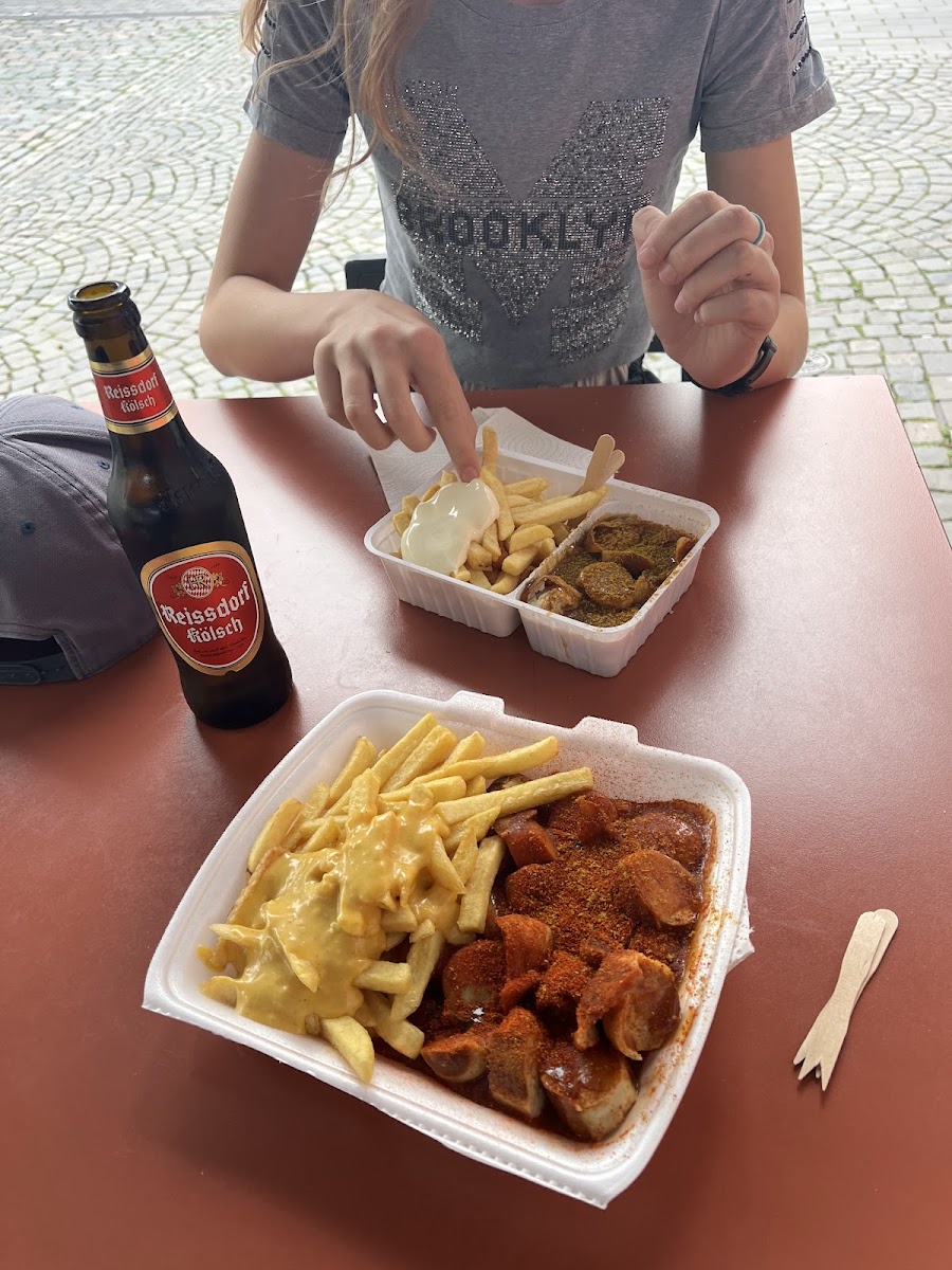 Nestled in the heart of Cologne at Heumarkt 59, Pommes Imperium is a lively takeout spot that has quickly become a favorite for both locals and tourists craving classic German street food. From the moment you step up to the counter, the aroma of sizzling sausages and crispy fries fills the air, instantly sparking your appetite. This restaurant has perfected the art of the quick bite, offering an inviting menu that’s perfect for those on the go or families looking for a casual meal.